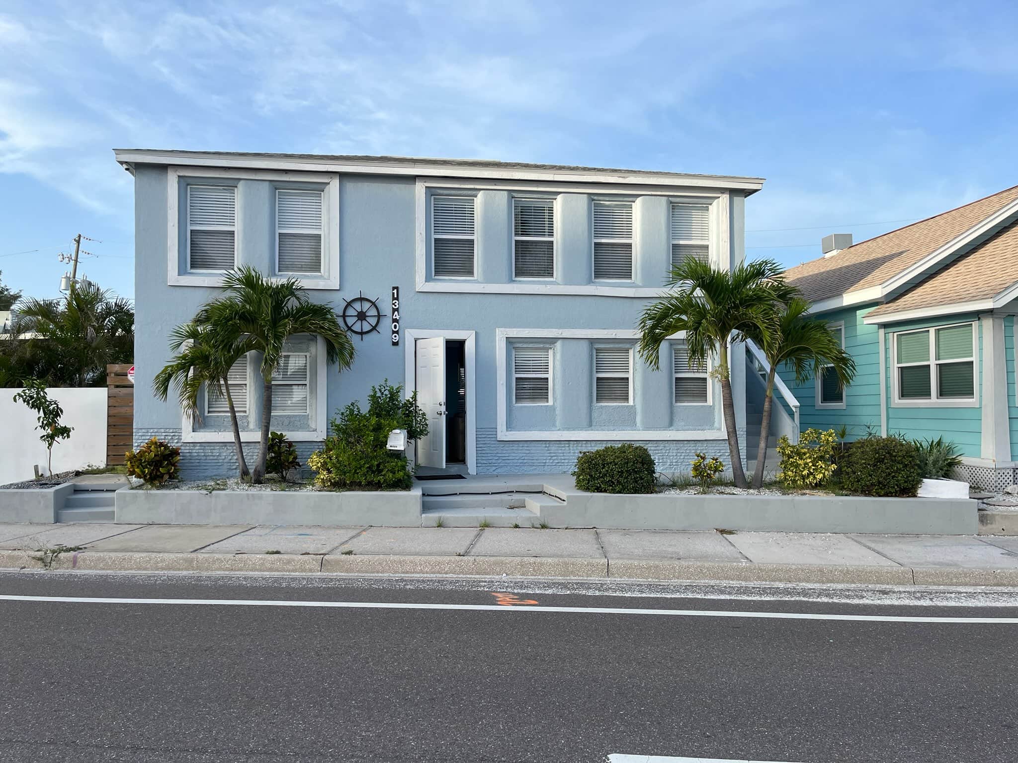 Walkto the white sandy shore, beach access is directly across the street. Bringthe entire family and friends. Home has five bedroomsthree downstairs and two upstairswith two fully stocked kitchens. View of the Gulf from upstairs. John's Pass, live music, restaurants, ice cream, convenience stores and souvenir shopsall just ashort walk away. There is alarge, heated swimming spa in private backyard. Come Visit and make lasting memories at Madeira Beach. a main central aircondotioner ,mini splits on dayroom,extra window unit on lower floor.